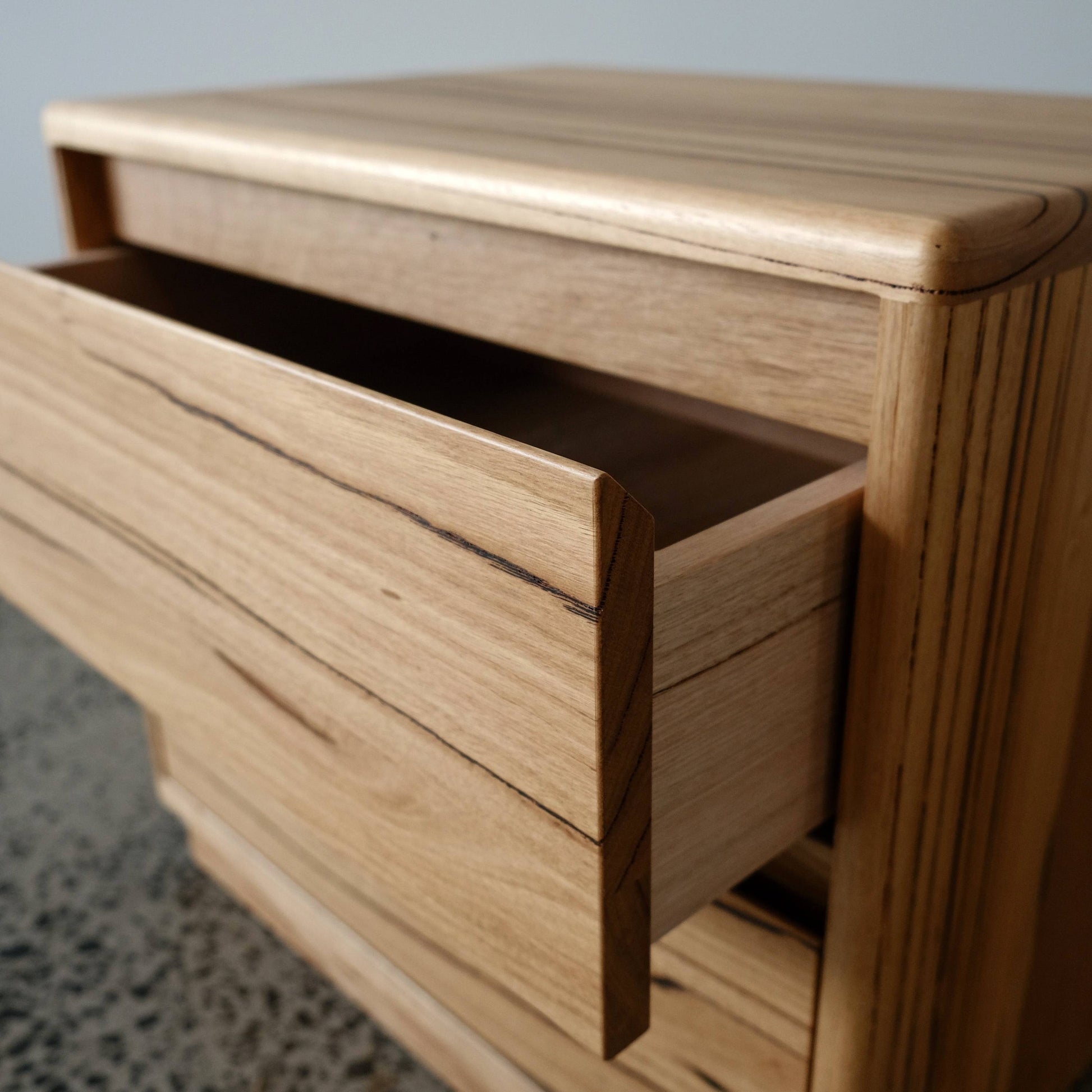 Plymouth Plinth Bedside Tables in Recycled Messmate - 600w x 530h
