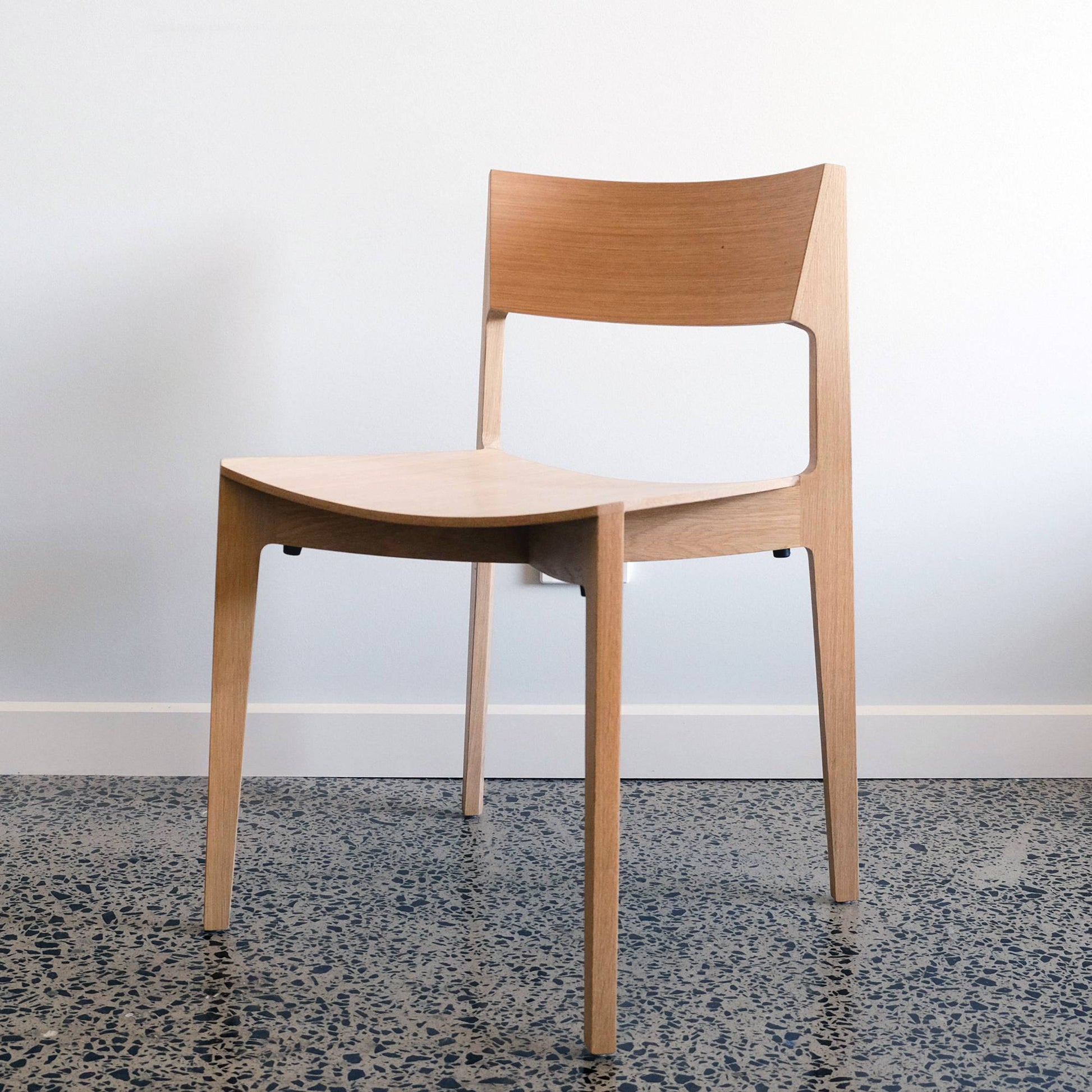 Materials: American oak frame with laminated American oak seat and back