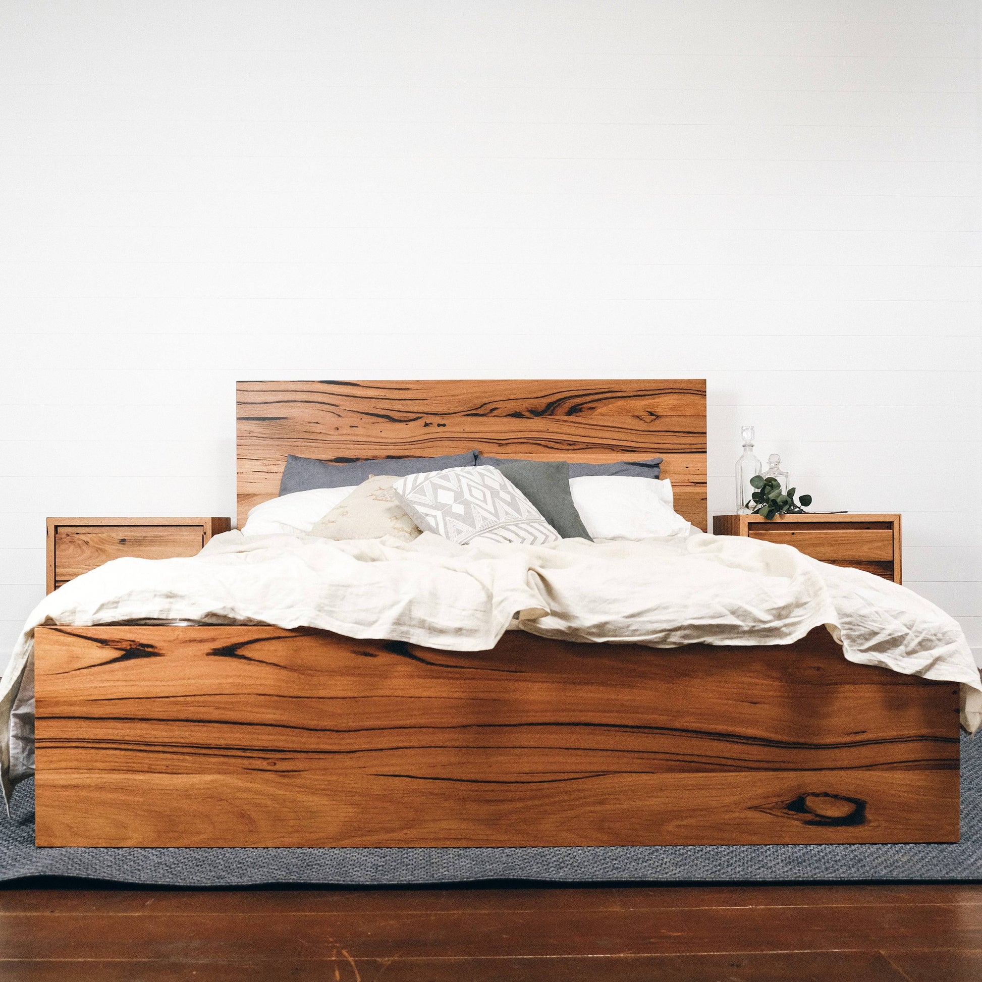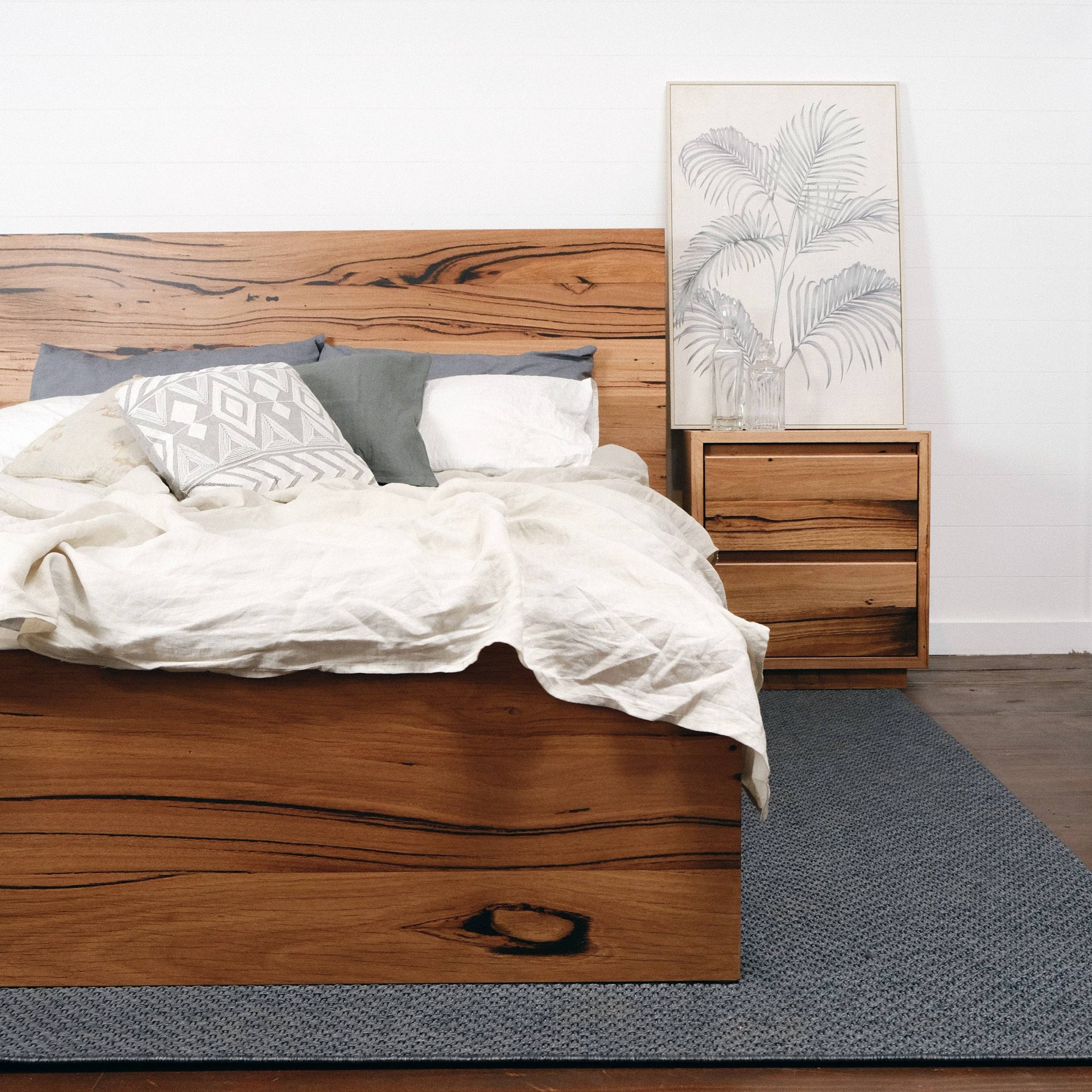 The Heathcote Panel Bed brings clean simplicity to contemporary Australian bedrooms through straight lines and robust proportions that let natural timber grain shine. This handcrafted timber bed frame showcases classic design that lets the timber become an anchor point in your bedroom. Made to order in our Melbourne workshop from sustainably sourced hardwood timber.