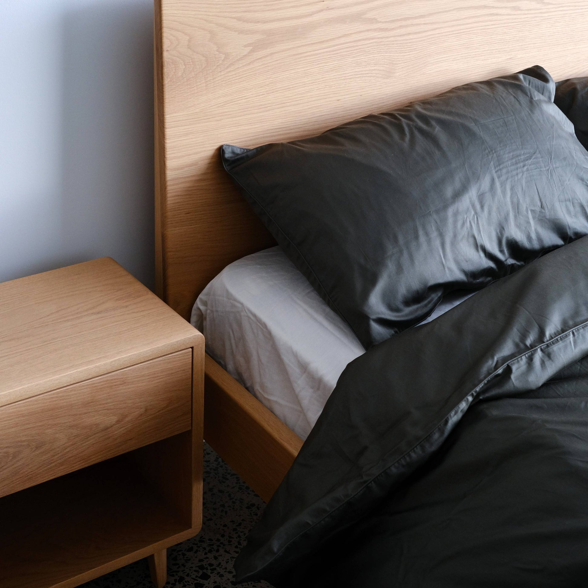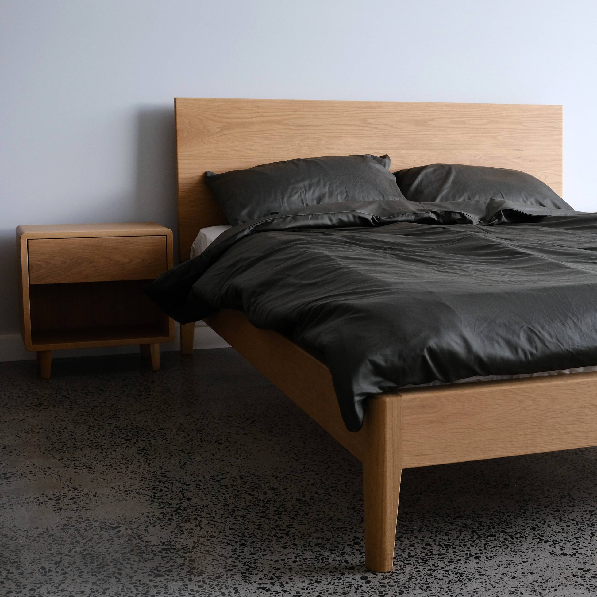 The Mayfield Bed brings sophisticated grace to contemporary Australian bedrooms through its elegant silhouette and graceful tapered legs with gentle radius edges. This handcrafted timber bed frame draws inspiration from modern Scandinavian design whilst maintaining the robust construction essential for restful sleep in your home. Made to order in our Melbourne workshop from sustainably sourced hardwood timber.