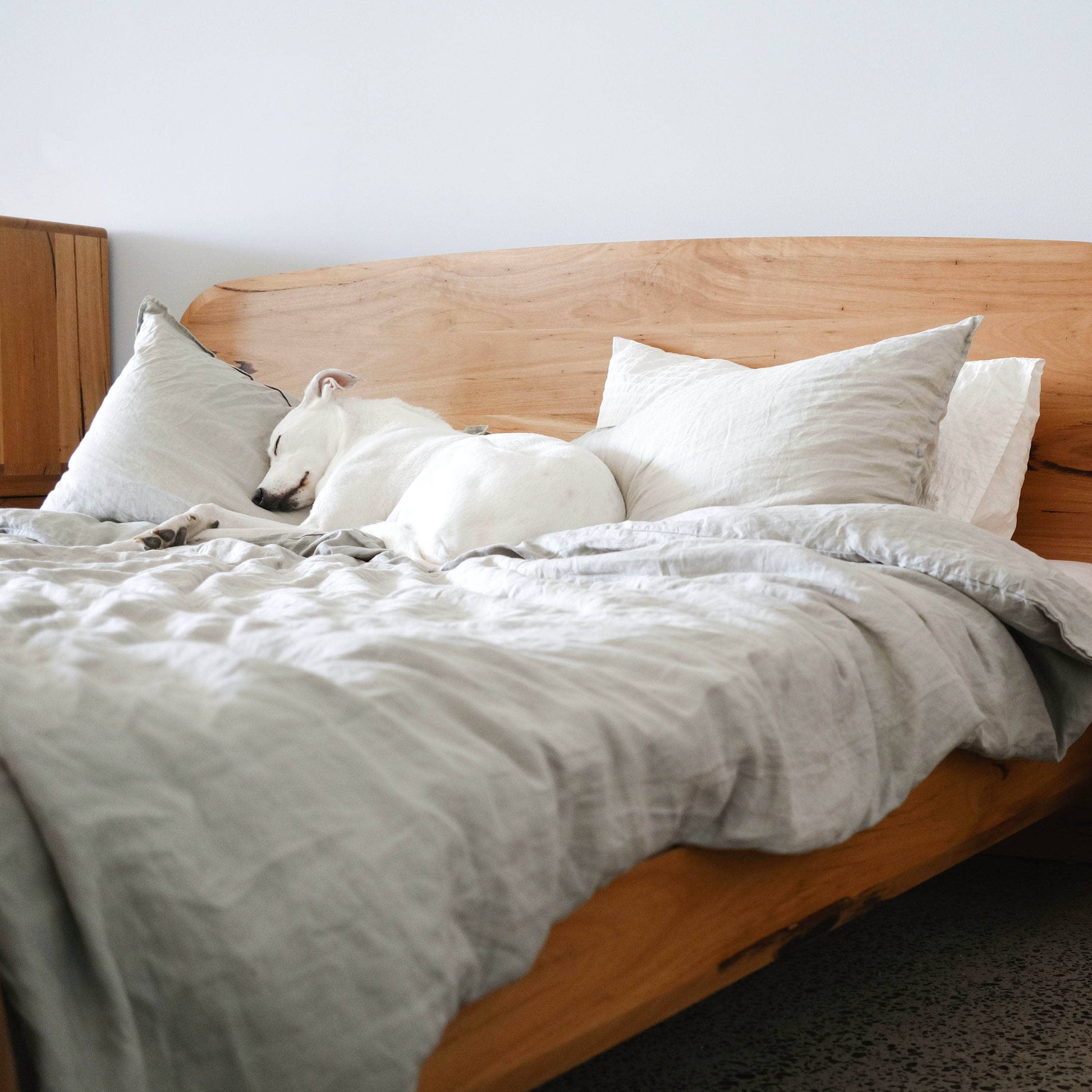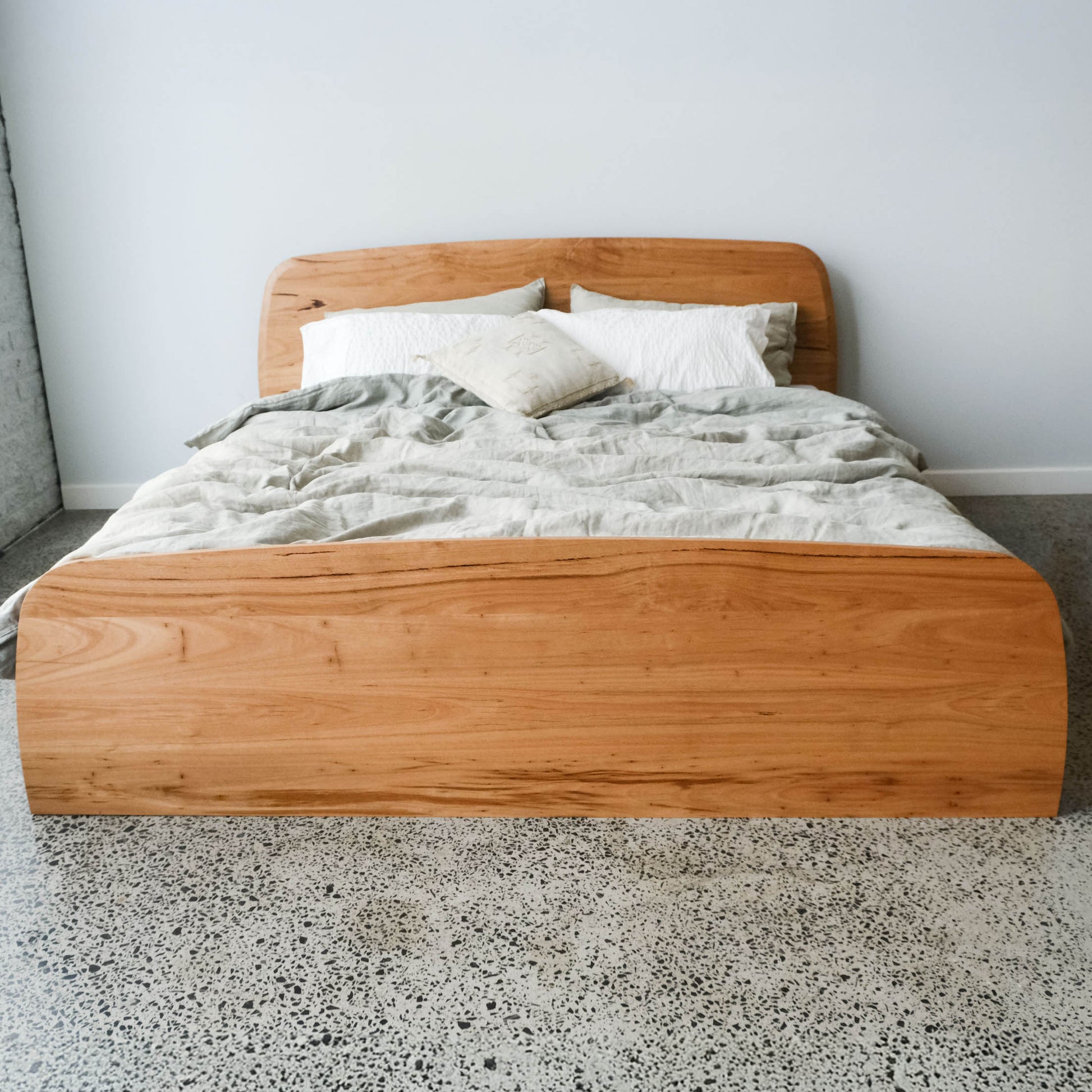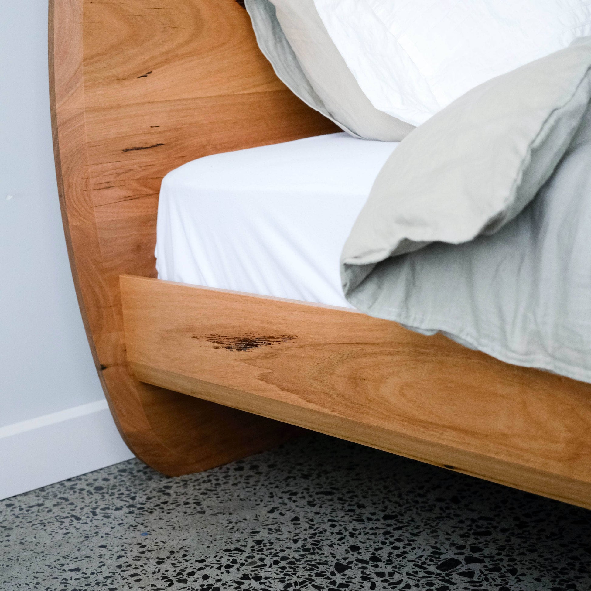 The Crawford Bed brings classic mid-century modern design to contemporary Australian bedrooms through its organic curved profile and signature sharknose bevelled edge detailing. Part of our Crawford collection, this handcrafted timber bed frame combines timeless modern design with robust construction for quality sleep. Made to order in our Melbourne workshop from sustainably sourced Blackbutt hardwood timber.