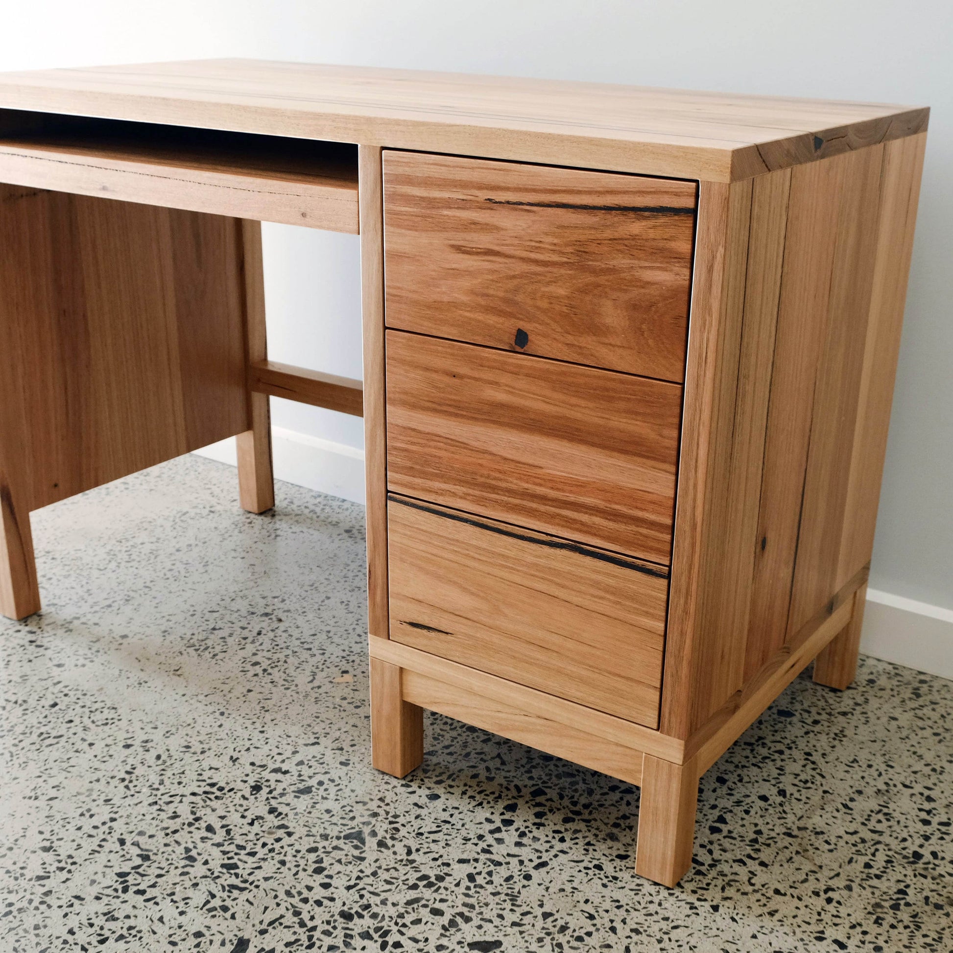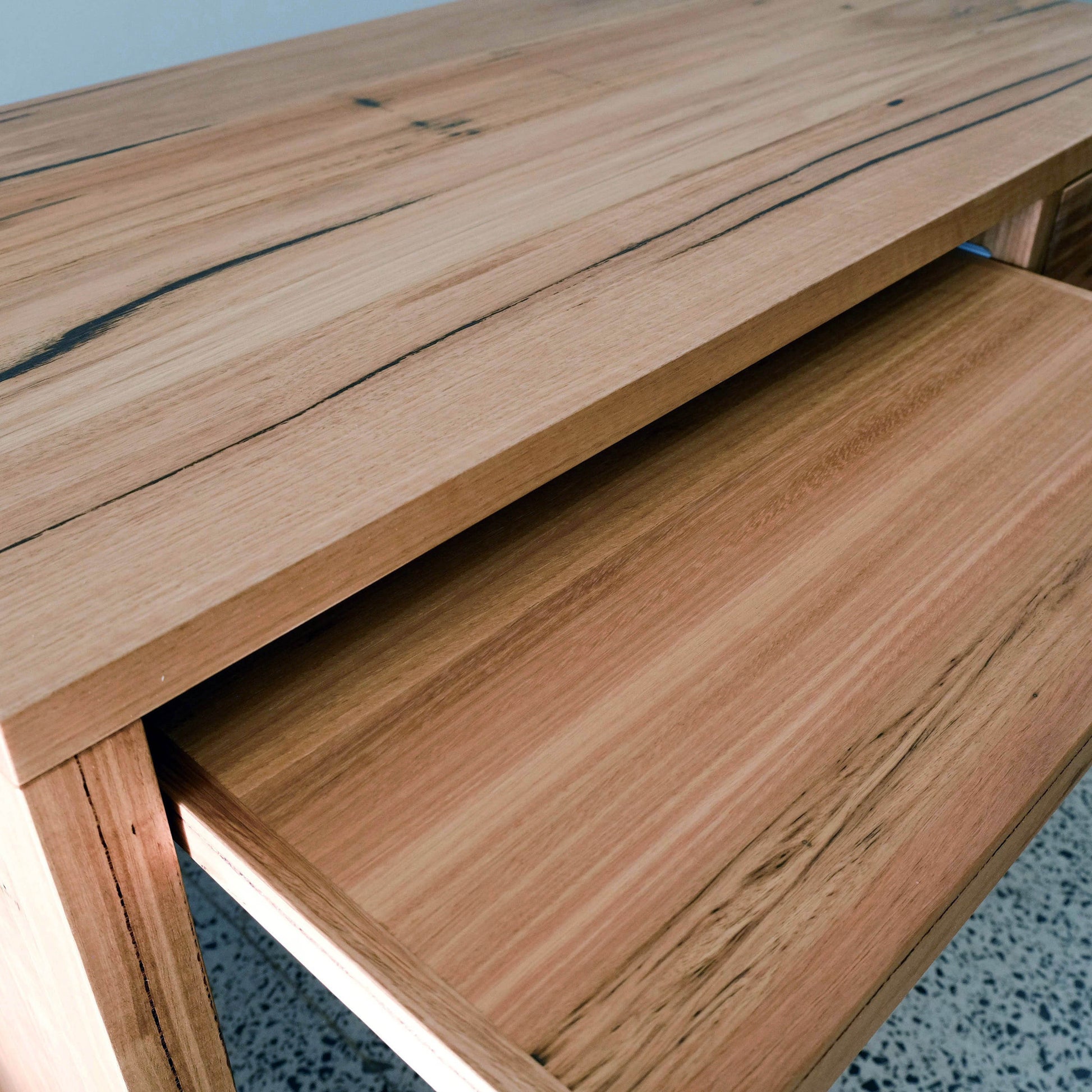 The Heathcote Desk brings clean simplicity to contemporary Australian home offices through straight lines that let natural timber grain take centre stage. Part of our Heathcote collection that celebrates understated elegance, this handcrafted timber desk offers practical storage with a pull-out keyboard shelf and three stacked drawers for organising office essentials. Made to order in our Melbourne workshop from sustainably sourced hardwood timber.